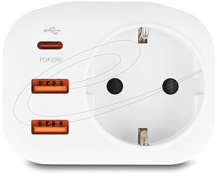 LeírásEz a Delock tápcsatlakozó egy USB Type-C -t tartalmazés két USB Type-A töltőport. Az USB töltőportok támogatják a gyakori gyorstöltési protokollokat. A csatlakoztatott eszközök 20 W-ig tölthetők . Műszaki részletekCsatlakozók: Bemenet: 1 x dugó CEE 7/7 Kimenet: 1 x tápcsatlakozó CEE 7/3 gyerekzárral 1 x USB Type-C anya 2 x USB Type-A anyaNévleges áramú aljzat CEE 7/3: 16,0 A / 250 V~Névleges tápcsatlakozó CEE 7/3: 4000,0 WUSB töltő: Bemenet: AC 250 V / 50 Hz / 0,5 A Kimeneti teljesítmény: max. 20,0 W teljes USB-A: 5,0 V / 3,0 A, 9,0 V / 2,22 A, 12,0 V / 1,67 A USB-C : 5,0 V / 3,0 A, 9,0 V / 2,22 A, 12,0 V / 1,67 A Túláramvédelem, túlmelegedés elleni védelemÁtlagos aktív hatásfok 85,63 %Hatékonyság alacsony terhelésnél (10 %) 74,98 %Üresjárati fogyasztás 0,09 WSzín: fehérMéretek (HxSzxH): kb. 80 x 70 x 55 mmA csomag tartalmaHálózati aljzatFelhasználói kézikönyvCsomagKiskereskedelmi dobozGyártó: Delock