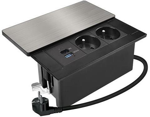 Solight PP128C-PD65 - Beépíthető konnektor vezeték nélküli töltéssel, 65W, 2 aljzattal + USB-A + USB-C PP128C-PD65 (SL1683)